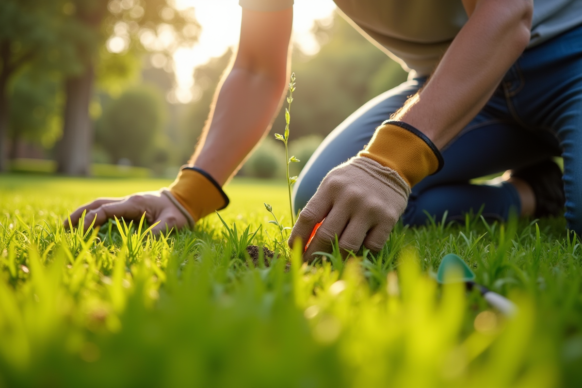 Le désherbage manuel cible la racine du problème, sans bouleverser l’écosystème du sol. Le désherbeur manuel extrait la plante en profondeur, limitant la repousse. Patience et régularité sont de mise, surtout si votre pelouse est vaste ou déjà colonisée.