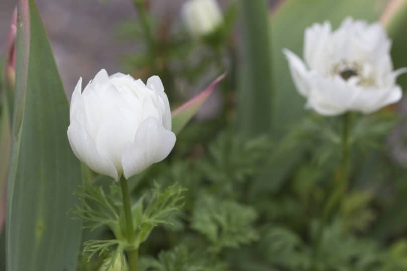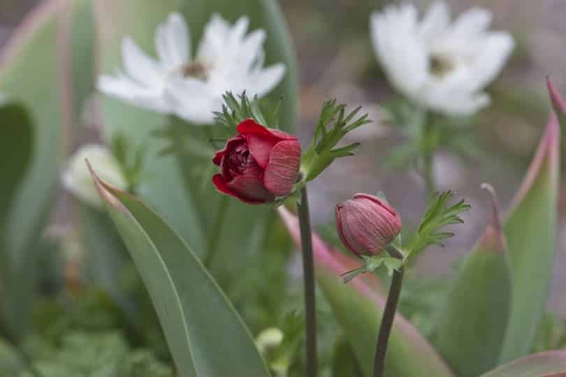 Côté bulbes, mes plantations échelonnées offrent leur lot de surprises. Les anémones rouges se sont invitées parmi les blanches, défiant mes prévisions : le résultat est inattendu, pas désagréable, mais pas tout à fait celui espéré non plus.