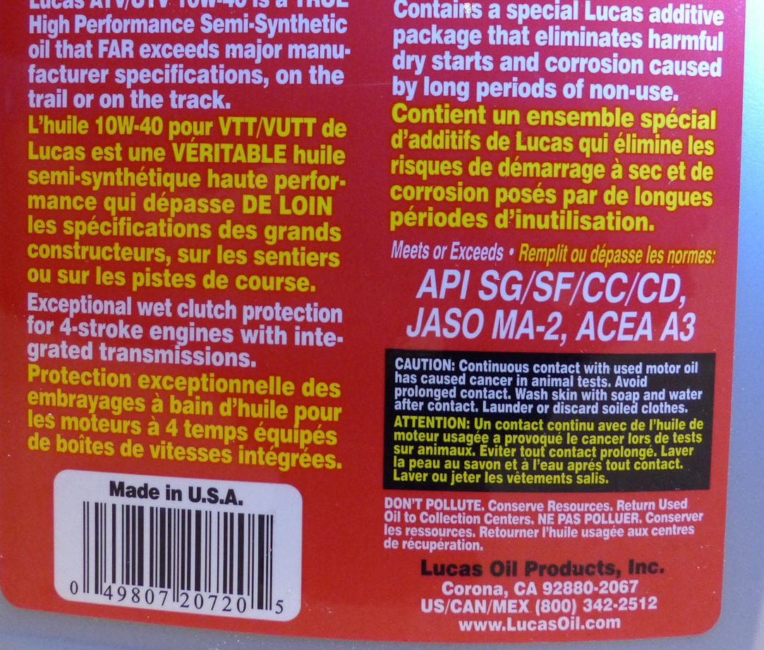 Par exemple, une huile Lucas API SM, JASO MA-2 dépasse amplement les prescriptions de nombreux constructeurs, et protège parfaitement un moteur Yamaha.